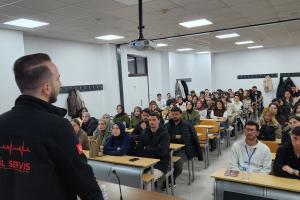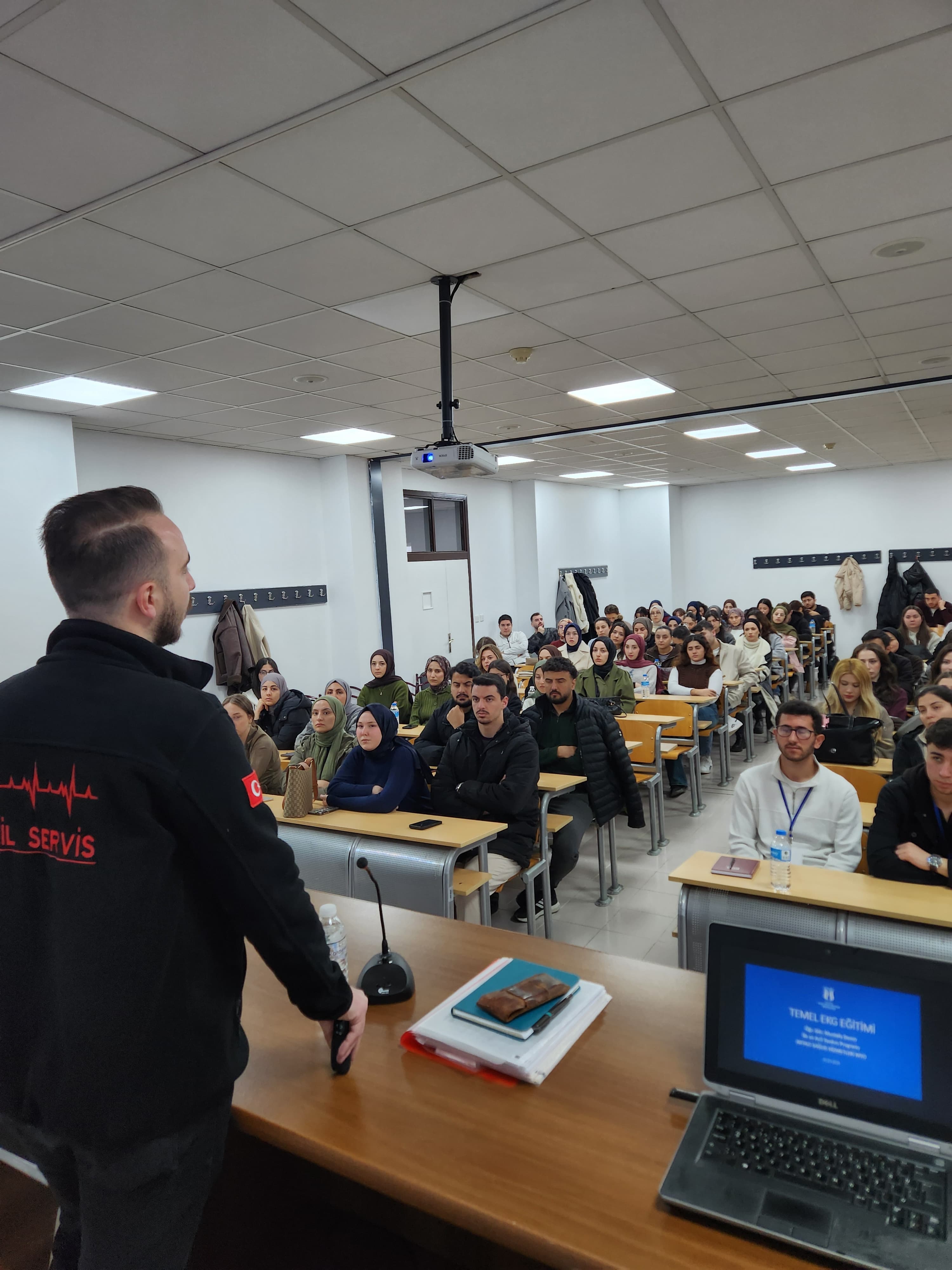 Fakültemiz Hemşirelik Bölümü ile Sağlıkta Kariyer Topluluğu iş birliğinde, Akyazı Sağlık Hizmetleri Meslek Yüksekokulu İlk ve Acil Yardım Programı Öğretim Elemanı Mustafa Demir tarafından uygulamalı EKG eğitimi verilmiştir. Öğretim elemanımız Sayın Mustafa Demir'e ve katılım sağlayan öğrencilerimize teşekkür ederiz.