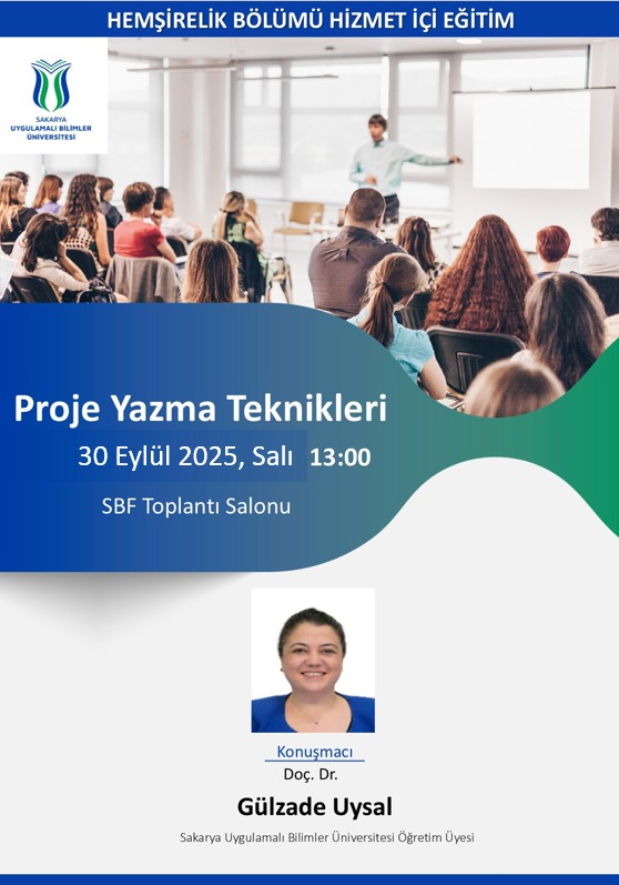 Fakültemizde Hemşirelik Bölümü hizmet içi eğitimi kapsamında, Doç. Dr. Gülzade UYSAL tarafından, Öğretim Elemanlarına "Proje Yazma Teknikleri" hakkında bilgilendirme toplantısı yapılacaktır. Galeri